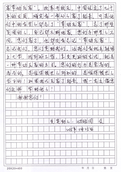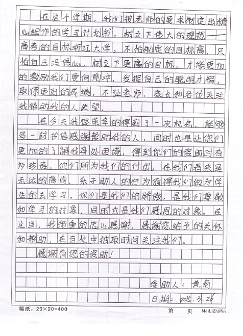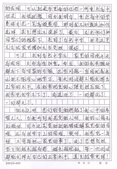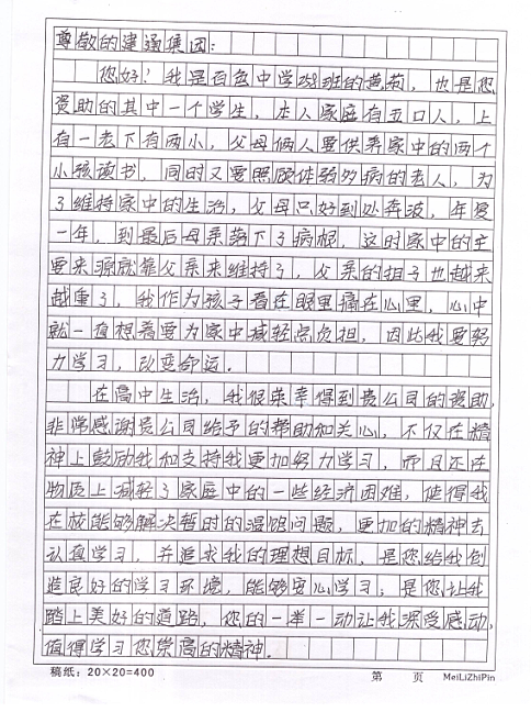 今年3月,百色中学的30多位受助学生纷纷给集团写来了感谢信,感谢集团对他们的资助,让他们能继续安安心心的读书,不用为因家里困难而随时面临辍学的事情困扰。