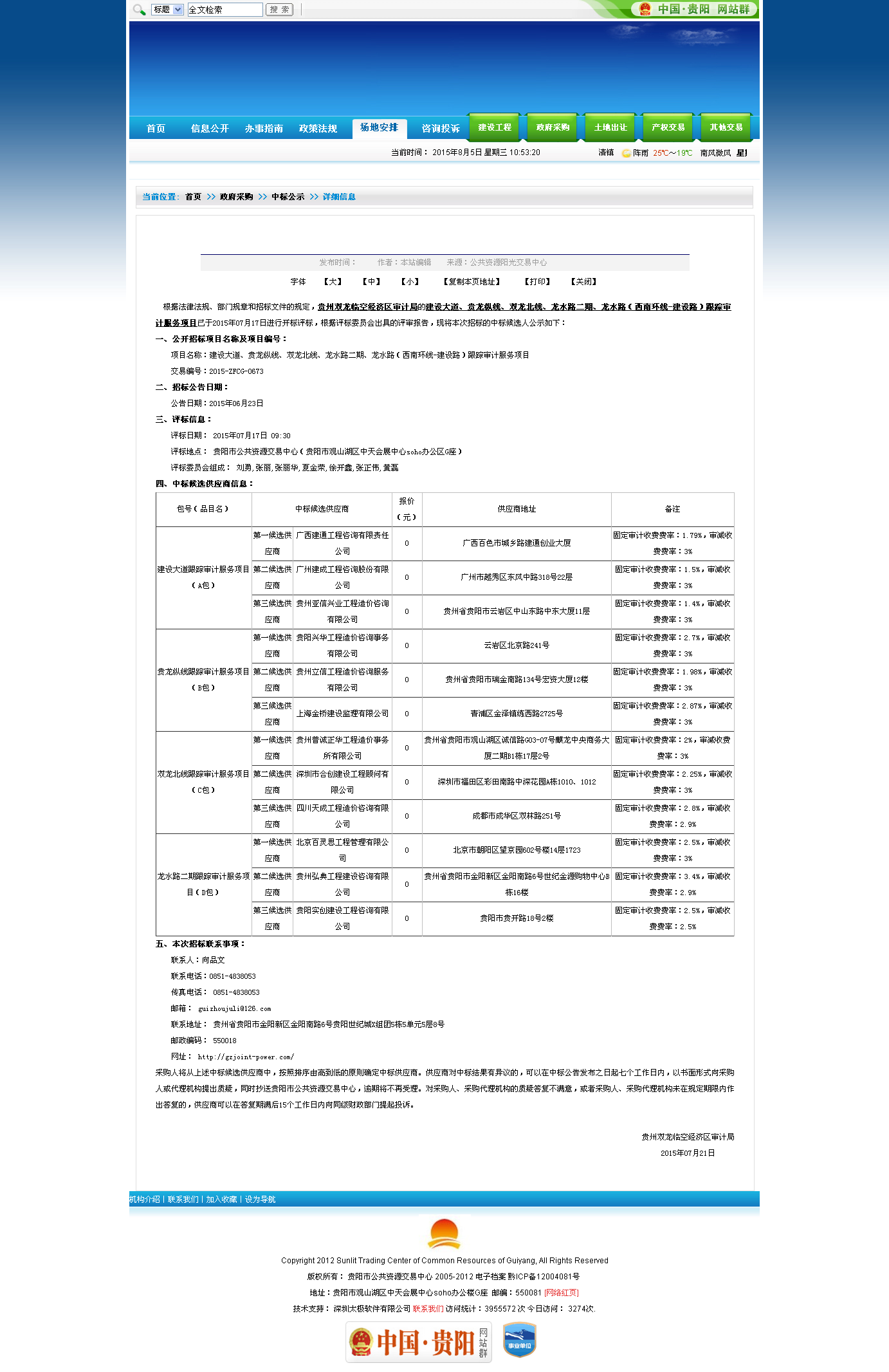 我集团工程咨询公司贵阳分公司在贵州双龙临空经济区审计局“建设大道跟踪审计服务项目”(项目投资规模:33亿元)招标采购中成功中标!