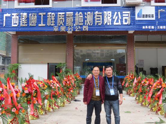 2015年11月10日,虽是细雨绵绵,但也挡不住广西建通工程咨询有限责任公司、广西建通工程质量检测有限公司平果分公司正式揭牌成立的热情。现场鞭炮齐鸣、掌声雷动。集团副总裁黄承理,广西建通工程质量检测有限公司总经理陆虹任出席了此次开业庆典,并代表集团邓董事长向平果分公司正式揭牌成立表示了祝贺。