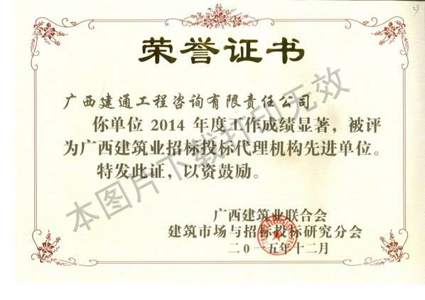 二O一五年十二月二十八日,广西建筑业联合会建造师分会、金属结构分会和建筑市场与招标投标研究分会暨2015年会在南宁市联合举行,我集团旗下子公司广西建通工程咨询有限责任公司作为理事会员单位及2014年度广西招标投标代理机构先进单位获得者受邀参加了此次会议,我集团副董事长黄树威以及副总裁黄承理出席了本次会议并作为获奖单位代表接受了表彰和荣誉。