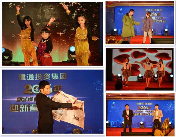席间,邓安杰董事长和全体员工一起观看了文艺晚会,伴随着一支金灿华丽的《金翅》开场舞,晚会正式拉开帷幕。婀娜多姿、赏心悦目、华丽的舞台、夺目的灯光让人应接不暇,舞蹈、欢歌、小品、魔术、走秀等多样化节目的精彩呈现,充分展示了集团的企业文化与员工能歌善舞、多才多艺、积极向上的精神风貌,精心策划的抽奖环节更是激动人心,在公布获奖号码时大家都屏住呼吸仔细聆听,每位参与者都期待着幸运的降临,精彩的节目、丰厚的大礼、美酒和佳肴,使得晚会现场叫好声不断,观众直呼过瘾,现场气氛热烈无比。晚会中两位聪明伶俐、活泼可爱的小主持人的加入以及家属小朋友们带来的儿童舞蹈给晚会增加了如新生命力般的色彩,由集团资助成立的百色中学建通班的同学们演绎的《感恩的心》成为本次晚会的一大亮点,节目表达出的“努力拼搏,感恩常在;风雨兼程,不忘初心”,这样的情怀让现场所有人都为之感动。由邓安杰董事长、罗程常务副董事长、黄树威副董事长及集团全体副总裁共同给晚会带来的合唱《友情岁月》、《我的好兄弟》成为本场晚会的压轴大作,“风雨同舟,感谢有你”,他们手牵着手,肩并着肩,热情奔放演唱的同时眼中仿佛含着激动的泪水,他们肩负重托,他们是建通的顶梁柱,他们的脚步是我们追逐的方向,他们的拼搏付出是我们的指路明灯,一步一个脚印,一年一个新高度,建通同仁们一同歌唱,歌声与企业齐飞扬,才华与企业共奋进!