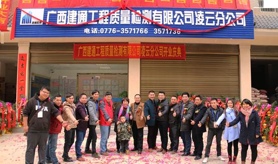 2016年1月27日下午4点18分,在灿烂的阳光下,伴着喜庆的礼炮声,集团副总裁黄承理及广西建通工程质量检测有限公司总经理陆虹任为代表的集团高层领导共同为检测凌云分公司开业揭牌并宣布广西建通工程质量检测有限公司凌云分公司正式开业!到场嘉宾纷纷为凌云分公司的开业致以了真诚的祝福。