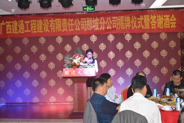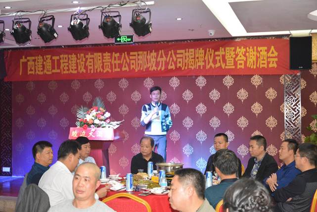 参加晚宴的各界领导、嘉宾对广西建通工程建设有限责任公司那坡分公司的成立给予了极大的肯定,同时也祝愿广西建通工程建设有限责任公司那坡分公司在新的发展形势下,事业蒸蒸日上,繁荣昌盛!