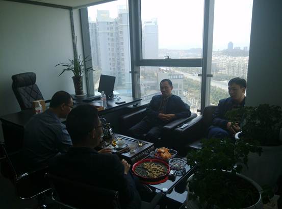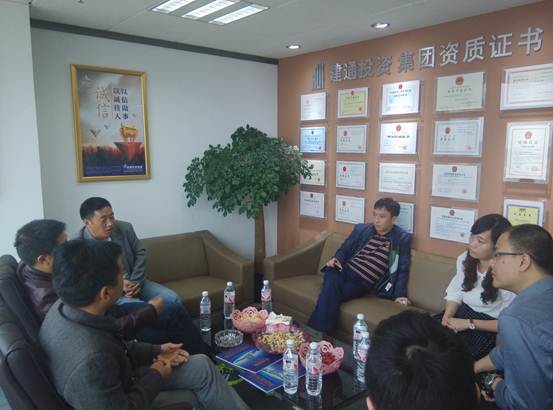 中午简单吃完午饭,董事长稍事休息就到了公司,先后会见了有意向合作的同行伙伴和部门领导。期间,董事长感谢各位对建通集团进入江西、云南市场的欢迎,感谢大家对建通品牌的认可,以及江西、云南人民的友好和热情,同客人的交流中,邓董事长向对方介绍“德建志远,业通人和”、“建通是我家,发展为大家”的企业核心理论以及“先做人后做事”的处世原则,恪守“以质量求信誉,以信誉促发展”的经营理念,用真诚去打动客户,用诚信去赢得市场!对方十分赞同邓董事长的意见和乐鱼(中国)一站式服务平台的经营理念,双方进行了坦诚的交流,气氛热烈。