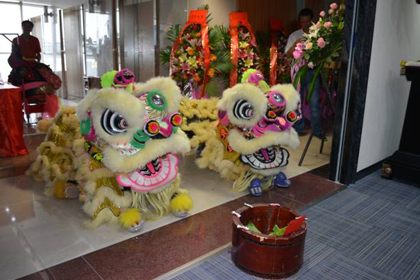 开业庆典活动在一片张灯结彩、锣鼓喧天、醒狮腾跃的热烈气氛中拉开了序幕。下午5点20分,邓安杰董事长携家人为雄狮点睛,在一片掌声与喝彩声中开业剪彩仪式正式开始,仪式中邓安杰董事长、罗程常务副董事长、黄树威副董事长、谢乃鹏副总裁、刘忠志副总裁、蒙建勋副总裁共同为广州总部的开业剪彩、揭牌!用金剪刀剪开了乐鱼(中国)一站式服务平台的希望之路、兴旺之路、腾飞之路。广州总部的剪彩仪式热闹非凡,各方宾客纷纷道贺,其乐融融。