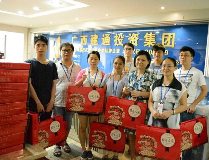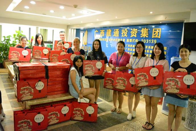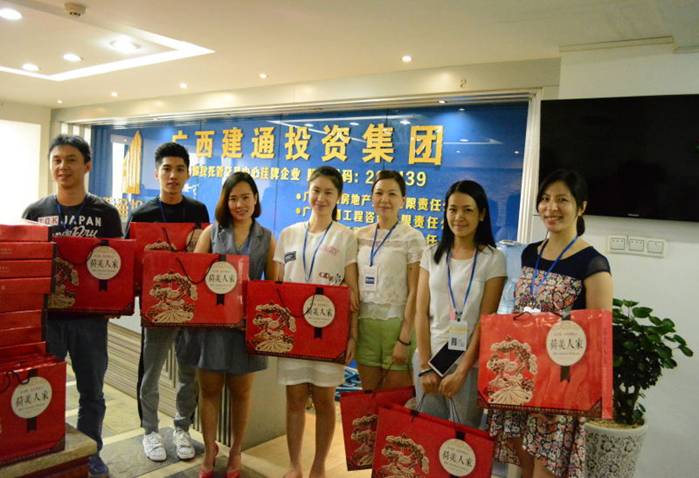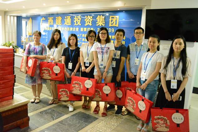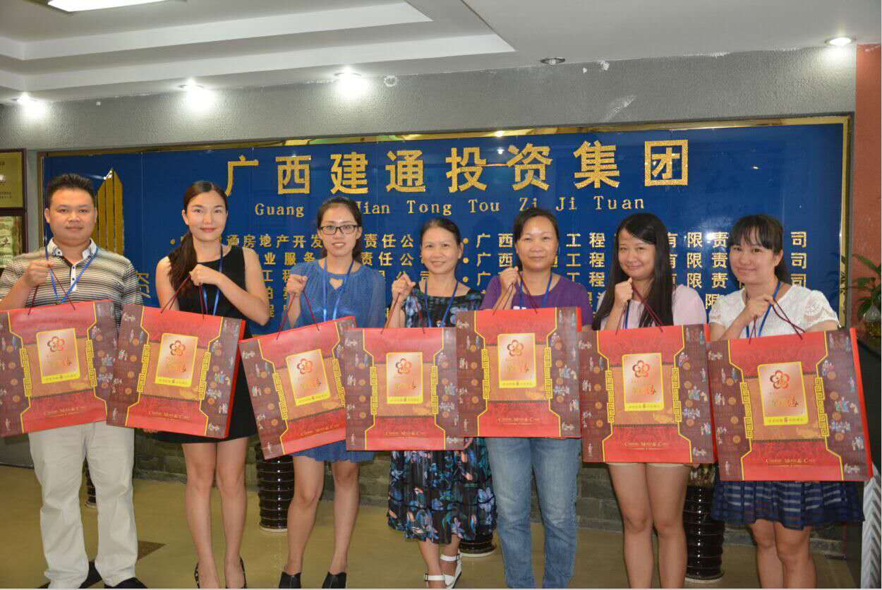 中秋节前在集团董事会秘书处工作人员的引导下,集团百色总部全体员工喜笑颜开的汇集在建通创业大厦和建通时代广场中心,领取集团精心准备好的中秋佳节礼品。205份中秋月饼在大厅堆积成一座座的山峰,百忙之中赶来的同事在井然有序的领取自己的月饼后,展示出最甜美的笑容和其他同事拍照留影纪念。这不仅仅是一份中秋礼物,更代表着集团对每一位员工表示深切问候和诚挚的感谢,感谢全体员工一年四季坚守在自己的工作岗位上,辛勤的为集团的发展壮大而努力。
