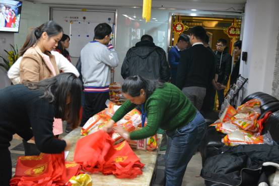 为感谢集团全体员工一年来的努力付出,关心员工生活,让员工欢度中华民族的传统佳节,能够开开心心地过上一个欢乐、祥和的2017年春节,集团为每位员工发放了丰富的春节年货,给全体员工带来了新年的气息。集团在董事会秘书处的细致安排下,于2017年元月20日开始发放年货,年货为一桶10升的厨邦花生油和一份精美礼品。
