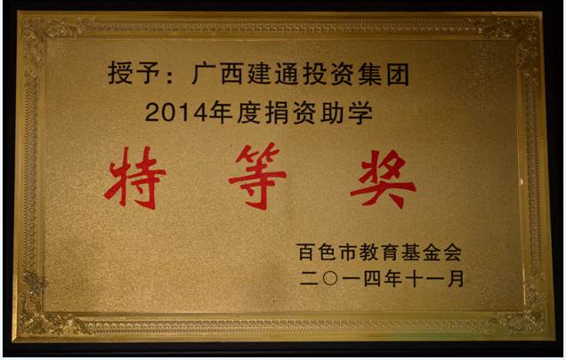 2014年10月30日,集团邓安杰董事长受邀出席百色市教育基金会接受捐款暨冠名助学仪式时,说过这么一句意味深长的话:“在我们企业发展的总体思路上,我经常教导集团全体员工不但要把集团发展成为一个卓越的企业,更要使集团成为一个值得全社会尊重的企业。而做人亦是如此,我们不仅要努力做一个拥有学识和财富的人,更要做一个值得社会尊重的人!”。集团上下不仅说得好,而且做得更好,一直致力于社会公益事业的捐助工作,弘扬正能量。据不完全统计,自2008年以来,集团先后向右江区团委、百色祈福高中、右江区龙川镇花红村、百色东合村、右江区六苜希望小学、百色市第六中学、百色市民政局、百色市残联、那坡县教育局、百色市百胜蓝天希望小学、百色市教育基金会、百色市第五中学、百色中学、百色学院等单位捐赠资金近150万元。有一位伟人说:把爱献给教育,献给下一代的人是世界上最幸福的人!有一位哲人说:在战争年代,扛枪上战场消灭敌人者最爱国;在和平建设时期,倾心尽力发展教育,捐资助学者最爱国!是的,在新的历史时期,集团上下将大力弘扬邓小平以“一位老共产党员”的名义为希望工程和百色革命老区捐资助学的崇高风尚,把深情藏进沃土 ,把爱心献给社会,积极投身捐资助学的滚滚洪流,把幼苗育成参天大树,把冬天变为温暖春天!