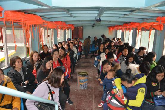 百色总部女同胞们乘坐游轮游览美丽的浩坤湖