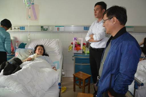 “德建志远,业通人和” 是集团的发展愿景,“建通是我家,发展为大家” 是集团的核心价值观。从创业开始,集团始终坚信:员工是企业发展的主体,是企业存在的核心动力。建通的发展,离不开集团基层员工的支持;建通的壮大,离不开基层员工的努力。正是有了许许多多员工的不离不弃,建通的今天才如此绚丽多彩!为此,一直以来,集团都秉持着以人为本的理念,以负责任、守承诺的态度对待每一位员工,让他们真真切切地感受到集团大家庭的温暖,尽而最大限度地发挥自身潜在能力,为企业创新发展作出自己的贡献。集团财务管理中心副经理王素革是集团一位老员工,自2009年10月到集团财务部工作以来,她怀着对集团公司财务事业的满腔热情,数年如一日,兢兢业业,勤奋工作,一步一个脚印,在平凡的岗位上做出了不平凡的成绩,从2010年至2016年,她连续7年被评为优秀员工和优秀中层。然而,天有不测风云!2017年3月16日,在王素革骑电动车上班途中,一位老人在非人行横道区域突然横穿马路,为了做出避让,王素革紧急刹车,导致车辆失控侧翻,造成她自身右边锁骨断裂性骨折。得知此事后,集团董事长邓安杰、集团常务副董事长罗程多次电话过问伤情,叮嘱她安心养伤,同时委托集团副董事长黄树威、集团副总裁罗杰代表集团领导员工前往医院探望,送上关怀祝福,于是出现了上述感人肺腑的话语和场面。