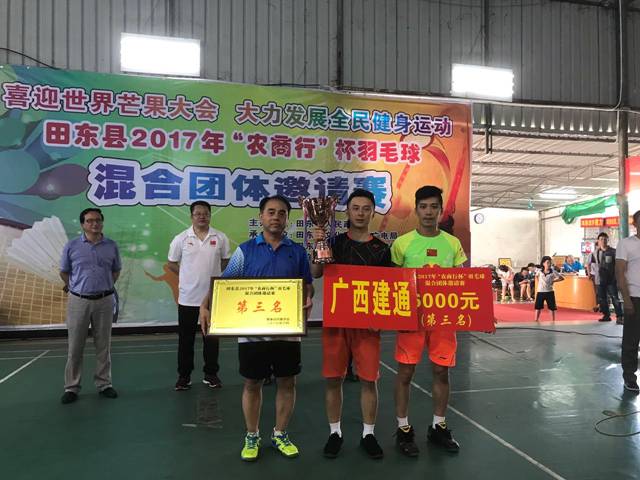7月1日至2日,建通集团球队健儿应邀参加由田东县文化和体育广电局组织举办的为期两天的2017年“农商行”杯羽毛球混合团体邀请赛。经过紧张激烈角逐,我集团获得了混合团体邀请赛季军的好成绩,冠军被红城1队获得。