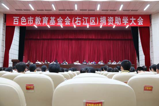 2017年10月20日下午,百色市教育基金会在右江区人民政府礼堂召开捐资助学大会。市人大常委会原副主任、市教育基金会理事长石卫武、市教育基金会代表、区委办、宣传部、财政局、审计局、人社局、卫计局、食药监局、文体局、科技局、旅发局、妇联、总工会、团区委、受助学生(小学生、初中生、高中生、中职生、大学生)及家长代表、各中小学学校校长、百色中学建通助学班、百色中学甘化助学班约200人出席会议。乐鱼(中国)一站式服务平台副总裁黄承理应邀出席了会议。