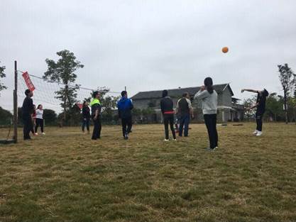 在结束了现宰现炒的醉鹅大餐后,员工们开始了紧张的合作项目。运动爱好者呼朋唤友,不顾寒风细雨,直奔球场而去,开始了没有边界没有规则的气排球合作与对抗:一传的惊险接球,二传的神秘默契,进攻的强力扣杀,防守的严密拦网,一次次的攻防转换折射着团队的力量!