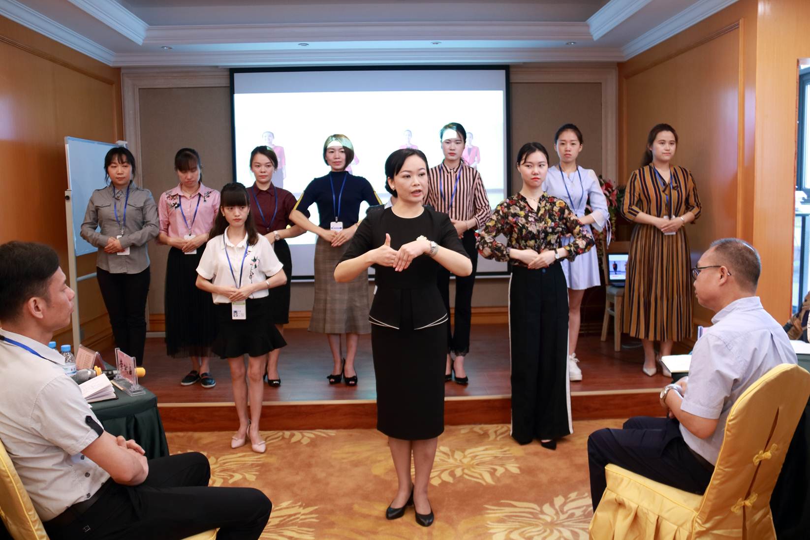 为了达到更好的培训效果,青羽老师通过现场互动及现场示范的形式调动气氛,寓教于乐不仅增强了参训人员的参与性与积极性,而且使现场人员加深了对商务礼仪知识的理解。