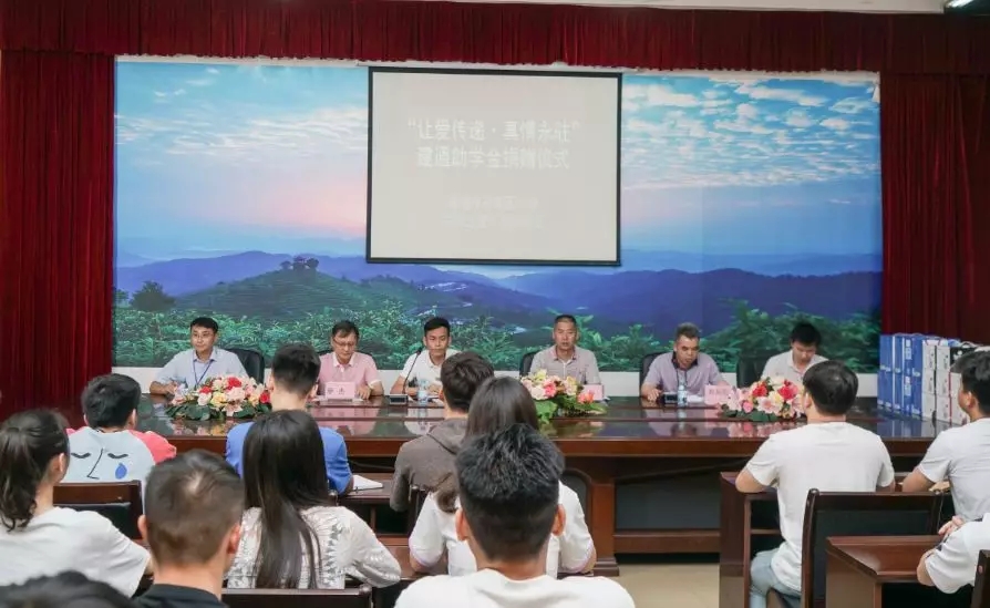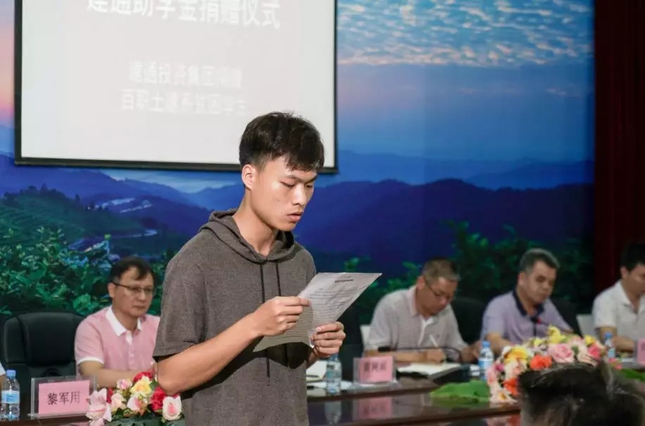 2019年05月29日下午16:00,在百色职业学院综合教学楼一楼会议室举行“让爱传递·真情永驻”建通助学金捐赠仪式,乐鱼(中国)一站式服务平台副董事长黄树威、副总裁罗杰参加了此次仪式,百色职业学院党委副书记岑俊、党委委员农乐设、土木建筑工程系党支部书记黎军用、土木建筑工程系副主任李建国等学校领导及部分土木建筑工程系同学出席了仪式,仪式由百色职业学院党委委员农乐设主持。
