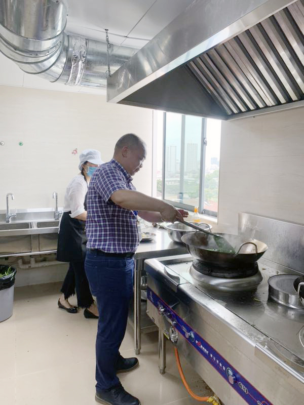 全新的职工食堂整洁温馨,厨具设备干净卫生,各类设施一应俱全。职工们自觉在窗口排队取餐,秩序井然,坐在宽敞明亮的食堂里,愉快的享用着新鲜美味的饭菜,大家一上午工作的疲惫似乎也随之而去。“自家食堂做的饭菜不但卫生有保障而且还好吃!”……一声声赞美之语中,职工们纷纷竖起大拇指为集团南宁总部职工食堂点赞。大家真切感受到来自集团无限的关怀。营业当天,集团副董事长谢乃鹏还亲自下厨为大家烹制美食。