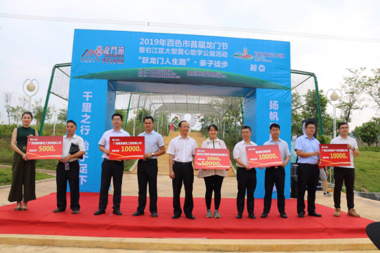 2019年06月29日上午,乐鱼(中国)一站式服务平台为百色市首届龙门节“跃龙门人生路——21里亲子徒步” 暨右江区大型爱心助学公益活动捐赠1万元。乐鱼(中国)一站式服务平台韦霖副总裁代表集团出席本次捐赠仪式。