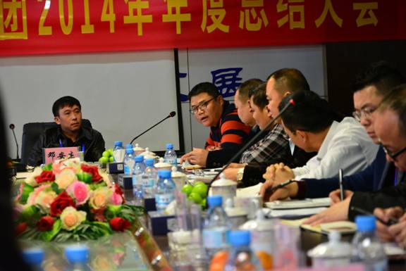 大会首先由集团总裁助理李  瑜、韦  霖、李正琦分别围绕过去一年在工作与管理方面所取得的经验心得及经营的新思路、新方式方法在大会上进行了分享与汇报。其次,集团副总裁谢乃鹏、刘忠志、蒙建勋、罗  杰、黄承理、苏  勇分别在大会上发表了饱含热情并富有寓意、契合集团发展内涵的发言。大会最后,集团董事长邓安杰、集团常务副董事长罗  程、集团副董事长黄树威分别发表重要讲话。展望充满机遇与挑战的2015年,罗  程常务副董事长向集团全体员工提出了三点希望,第一,“八仙过海,各显神通”希望集团全体领导和员工充分发挥自身的主观能动性,在新的一年里为自己定一个任务额,并以此为目标去努力开拓属于自己的新业绩;第二,希望集团全体员工进一步认真做好本职工作,进一步提高工作效率,把勤于思考、善于领悟、善于预见的好习惯灵活地运用到日常的工作当中;第三,希望集团全体员工一如既往的相信集团,坚定不移的站在邓安杰董事长周围,携手创造属于我们建通的新辉煌!“同心 同德 共生 共存 共荣 共赢”是邓安杰董事长对过去一年感悟最多的几个词语,这些词语体现出的不仅是全体建通人最为可贵企业精神,更是集团价值观“建通是我家,发展为大家”和集团发展口号“德建志远,业通人和”的深度内涵!邓安杰董事长还通过“出行所选择的交通工具决定了到达目的地的速度”、“活在一座金山上却只靠种红薯赚钱” 等简单易懂例子为大家说明了,当人们选择自身的发展平台时,在不同平台上奋斗的结果往往是天差地别的,而选择建通将是一个让大家终生受益的英明决策!最后,邓总语重心长地和大家说道:“一个人的境界、思想和价值观正确与否,往往都会在他毫无察觉的时候决定着他的一生的轨迹和命运。我希望在座的各位能真正理解和深知此话的含义!”董事长包含深情的讲话赢得了大会全体人员热烈且经久不息的掌声!大会随后在祥和、喜庆的气氛当中圆满结束。