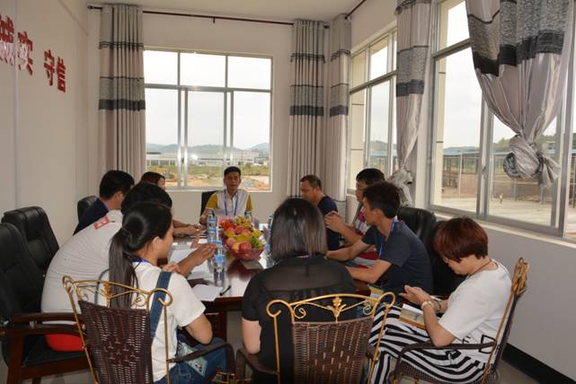图一:集团副董事长黄树威、集团副总裁黄承理、董事会秘书处综合三部主任覃艳妙、检测公司副总经理覃佳伦倾听检测公司员工做工作汇报